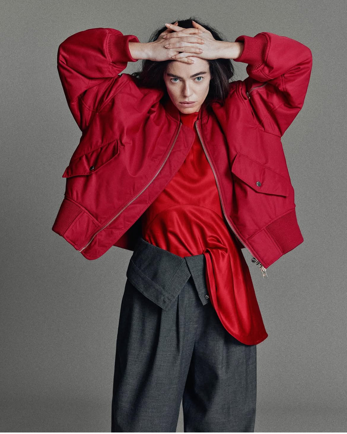 OVERSIZED CURVED HEM BOMBER JACKET